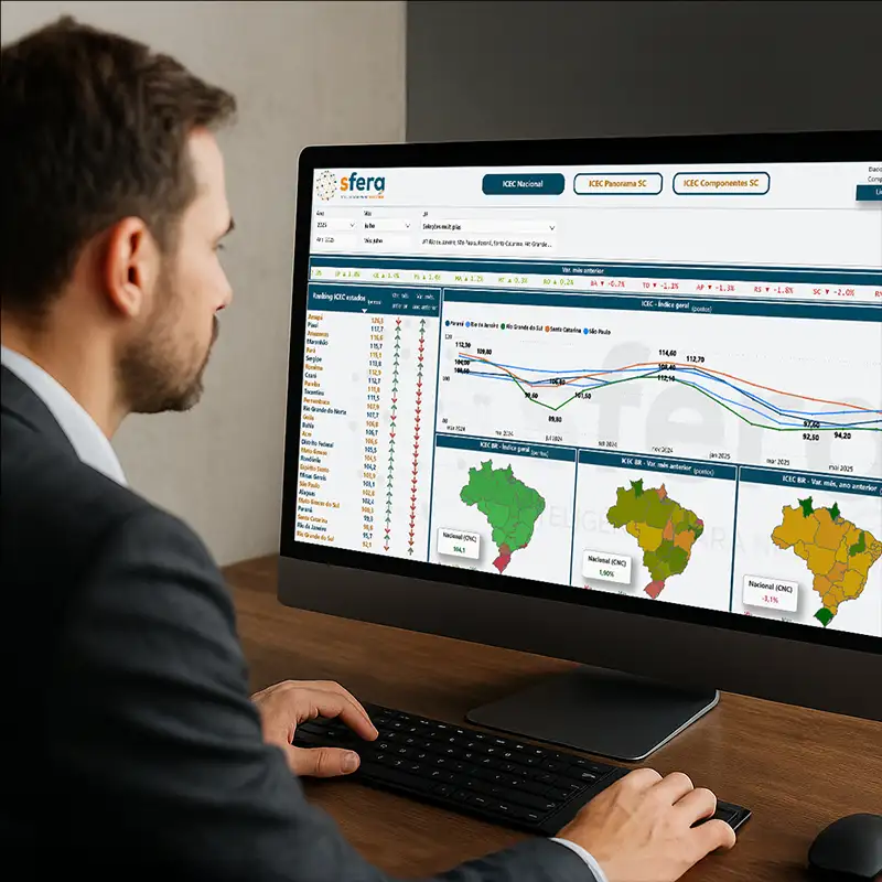 Imagine ter ao seu alcance uma ferramenta que reúne diversos indicadores econômicos em um só lugar, apresentados de forma clara e interativa. Com o Sfera, você acessa painéis completos com números absolutos e relativos, tabelas, mapas e gráficos que facilitam a compreensão e a análise das informações mais relevantes para o seu segmento.